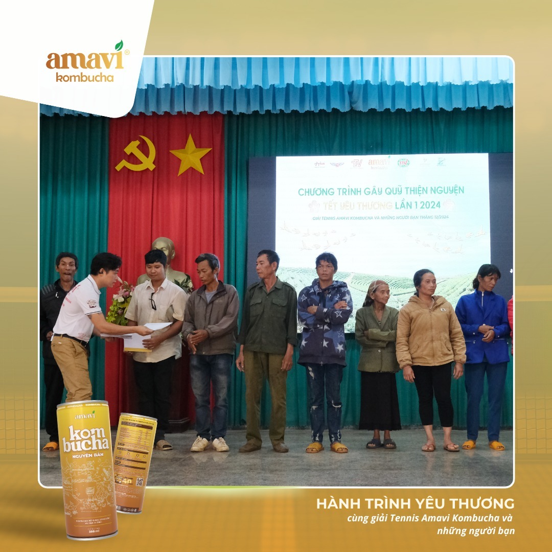 Vào ngày 14/12/2024, tiếp nối thành công của Giải Tennis "Amavi Kombucha & Những người bạn", Amavi Kombucha đã có mặt tại xã Lộc Tân, huyện Bảo Lâm, tỉnh Lâm Đồng, để trao tặng 100 phần quà ý nghĩa đến các hộ gia đình khó khăn, đặc biệt là bà con dân tộc thiểu số đang sinh sống tại vùng sâu, vùng xa.